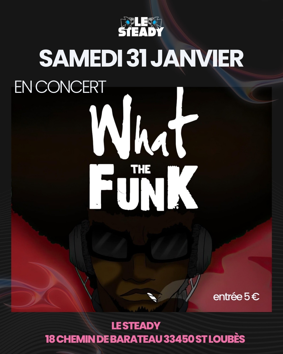 Concert avec "What the funk" reprises Soul/Funk ce samedi 31 Janvier au Steady !