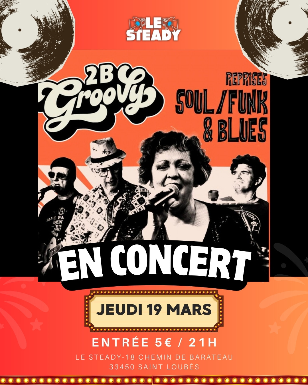 Ce jeudi 19 mars, le Steady vous propose une soirée concert avec le groupe "2 BE GROOVY".