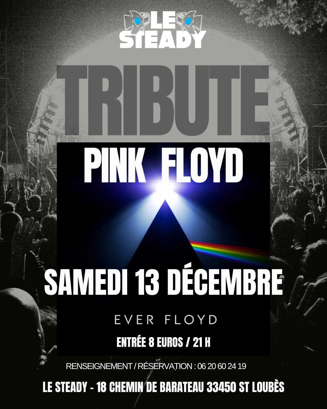 Ce samedi 13 Décembre, l'équipe du Steady accueille sur sa scène le groupe "EVER FLOYD".