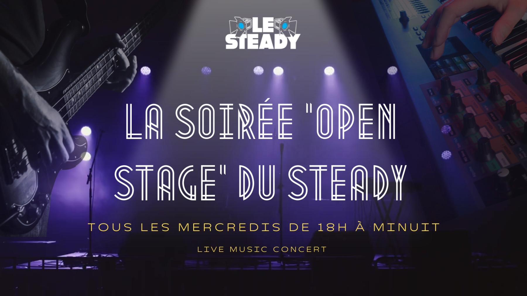 Tous les mercredis, le Steady ouvre sa scène à tous les musiciens artistes chanteurs(ses), instrumentistes, de tout âge et de tous niveaux, désireux(ses) de se produire dans des conditions professionnelles, et devant un public !